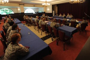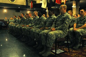 Team Kadena welcomed newly promoted staff sergeants to the NCO tier during an induction ceremony at the Rocker NCO Club Sept. 3, 2014, here.Col. Thomas D. Torkelson, 18th Wing vice commander and Chief Master Sgt. Daniel P. McGuire, 18th Wing command chief master sergeant, hosted the ceremony as part