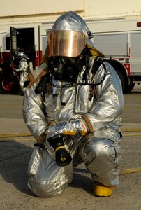 Airmen yell across a field for teammates to move from barrier to barrier, returning fire while their patrol is caught in a firefight during a Shoot, Move, Communicate training course here Sept. 6. Shoot, Move, Communicate tests security forces members' ability to communicate with their teammates