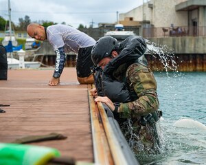 U.S. Air Force survival, evasion, resistance and escape specialists with the 18th Operational Support Squadron, train and instruct aircrew members during a combat survival training course at Kadena Air Base, Japan, March 18, 2021. CST is a SERE taught course that prepares aircrew members for the