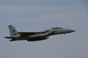 An F-15C Eagle takes off from Kadena Air Base, Japan, April 28, 2020, headed for the U.S. Central Command area of responsibility. Members of the 18th Wing deployed to CENTCOM to defend U.S. and partner nation interests in the region and preserve the international rules-based order. While the 44th