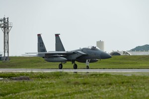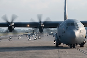 Airmen from Kadena Air Base, Japan, executed a training exercise on Marine Corps Air Station Futenma Feb. 21, 2020, in cooperation with Airmen from the 317th Airlift Wing from Dyess Air Force Base, Texas, 19th Airlift Wing from Little Rock Air Force Base, Arkansas, and MCAS Futenma Marines to