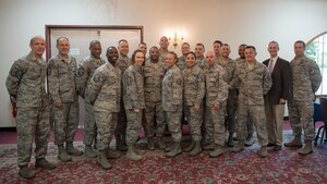 June 13, 2018 AETC Leadership visits Kadena AB First sergeants from Team Kadena pose for a photo with Air Education and Training Command leaders June 12, 2018, at Kadena Air Base, Japan. The visit highlighted new innovations and ideas being brought forth for future Airmen and their training timeline from basic to their first duty station. (U.S.