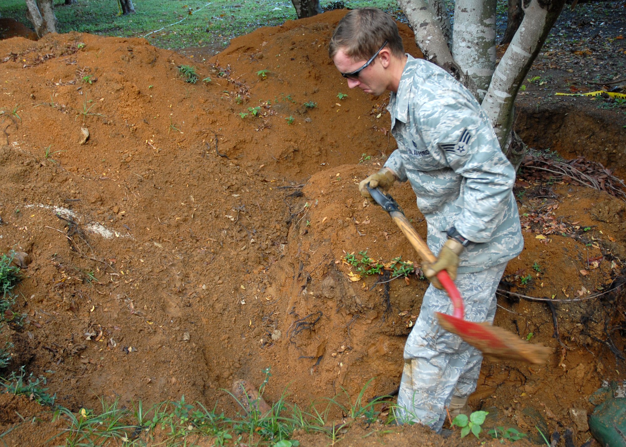 Col. Kelly Fletcher, 18th Mission Support Group commander, talks to the EOD team lead over the radio during a UXO disposal operation Oct. 19 at Kadena Air Base, Japan. Col. Fletcher, along with members of the 18th Security Forces Squadron and 18th Wing Public Affairs, worked out of the joint command center established by Kadena Town officials to coordinate the operation, which required evacuation of nearby off-base homes and a brief stoppage of traffic on Highway 58, which runs alongside the base. Kadena EOD specialists removed the UXO and destroyed it on the EOD range without incident. (U.S. Air Force photo/Maj. John Hutcheson)