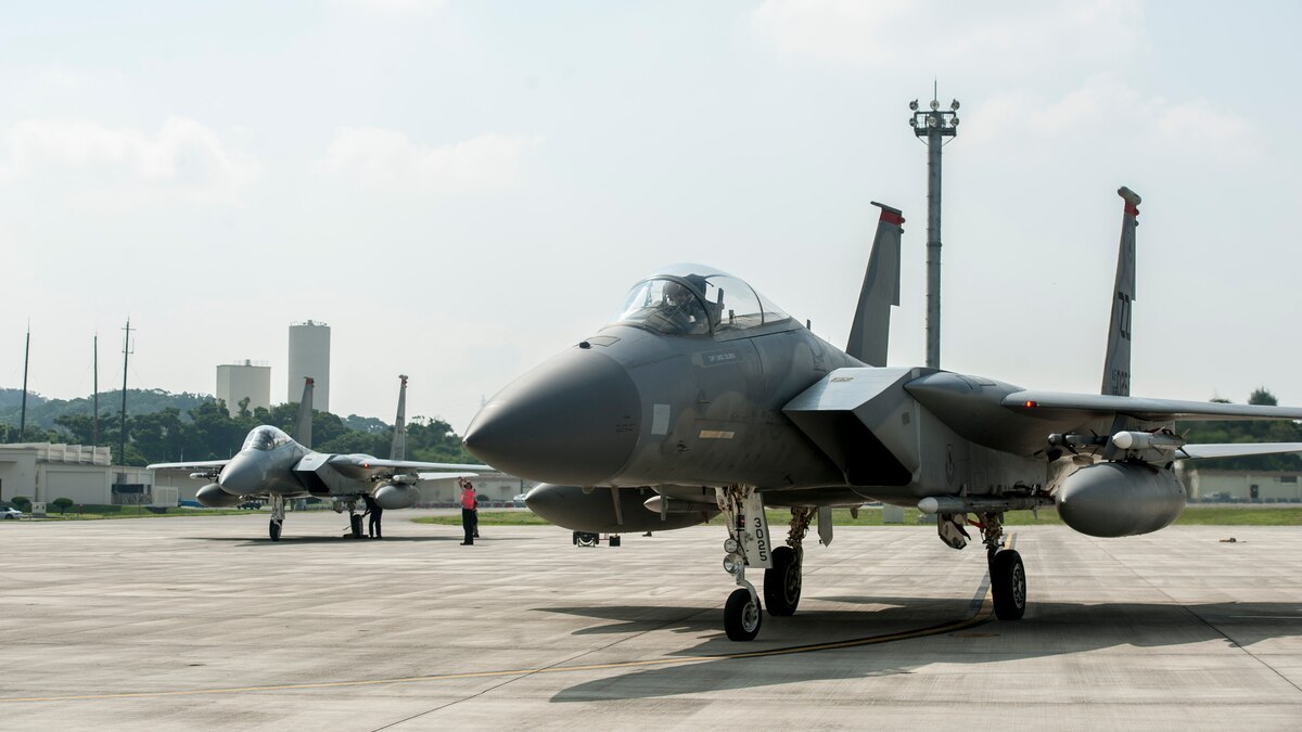 Maintainers from the 18th Aircraft Maintenance Squadron and pilots assigned to the 44th and 67th Fighter Squadrons conduct a mass aircraft generation exercise Aug. 22 and 23, at Kadena Air Base, Japan. Maintainers loaded AIM-9 sidewinder missiles, AIM-120 advanced medium-range air-to-air missiles, flares, and M-61A1 cannon rounds onto F-15 Eagles, before the aircraft taxied and were dispersed around the flight line. Kadena participates in a variety of routine training exercises throughout the year to maintain a consistent high standard of readiness and expertise. F-15s assigned to Kadena Air Base taxied on the flight line during a training exercise Aug. 23 while loaded with live ammunition. This training was not in response to or in anticipation of any regional concerns. While no planes took off from the flightline, this routine exercise helped ensure Kadena’s ability to provide air superiority in the defense of Japan and promoting peace and stability throughout the Indo-Asia-Pacific region. (U.S. Air Force photo by Senior Airman Peter Reft/Released)