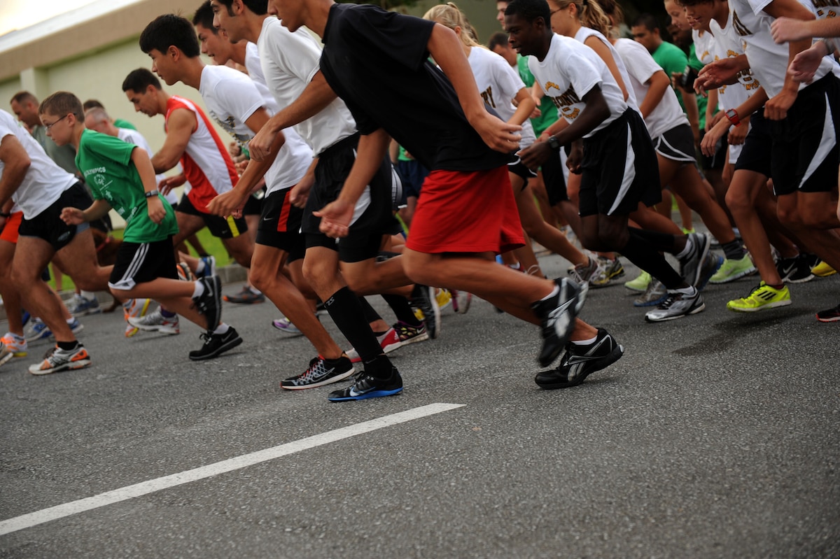 U.S. Air Force Col. Jeffrey Ullmann, 18th Mission Support Group commander, thanks a group of participants for their contribution to the Kadena Special Olympic Shades of Green 5k on Kadena Air Base, Japan, Sept. 22, 2012. The KSO is an annual event held on base, supporting more than 5,000 special-needs athletes, artists, volunteers and supporters. (U.S. Air Force photo/ Airman 1st Class Brooke P. Beers)