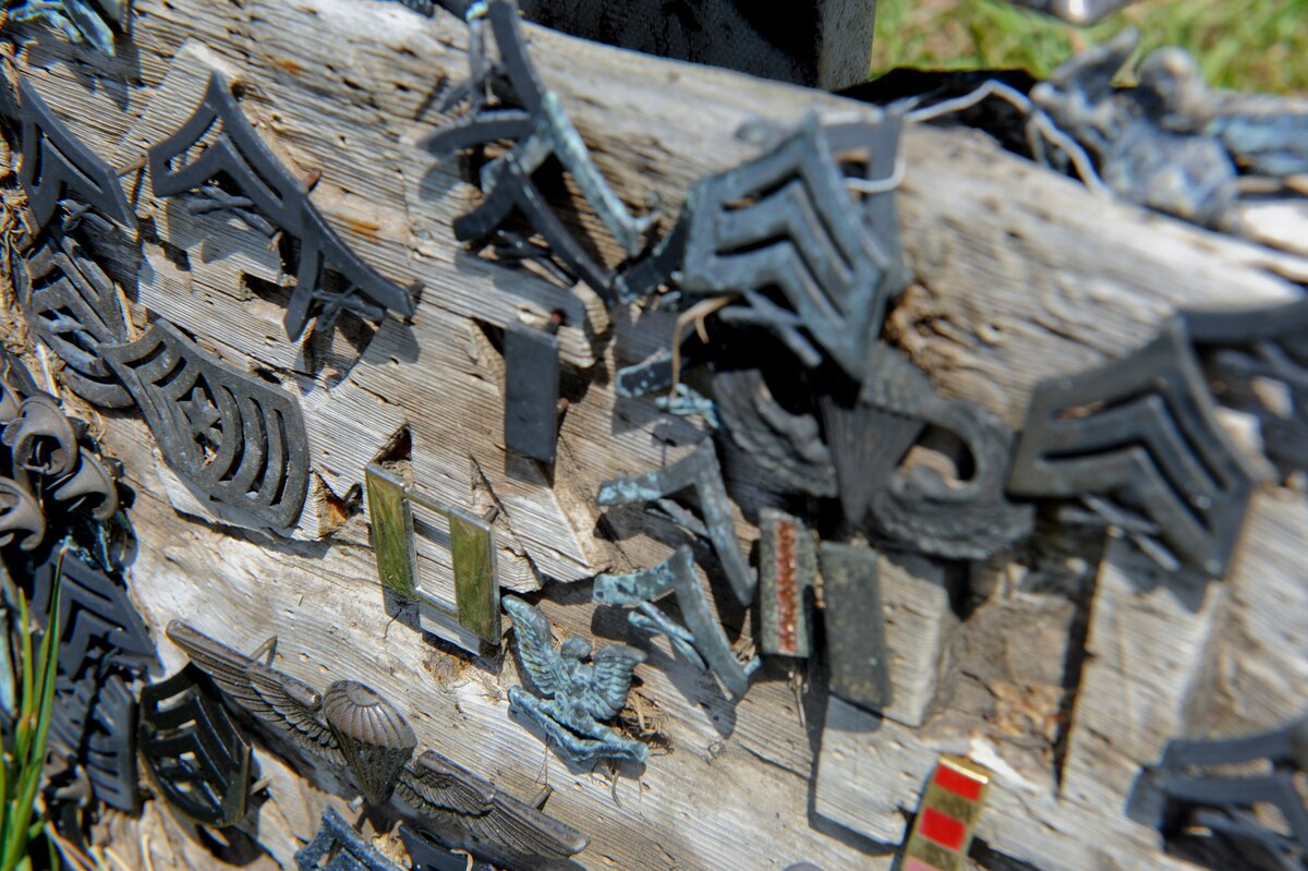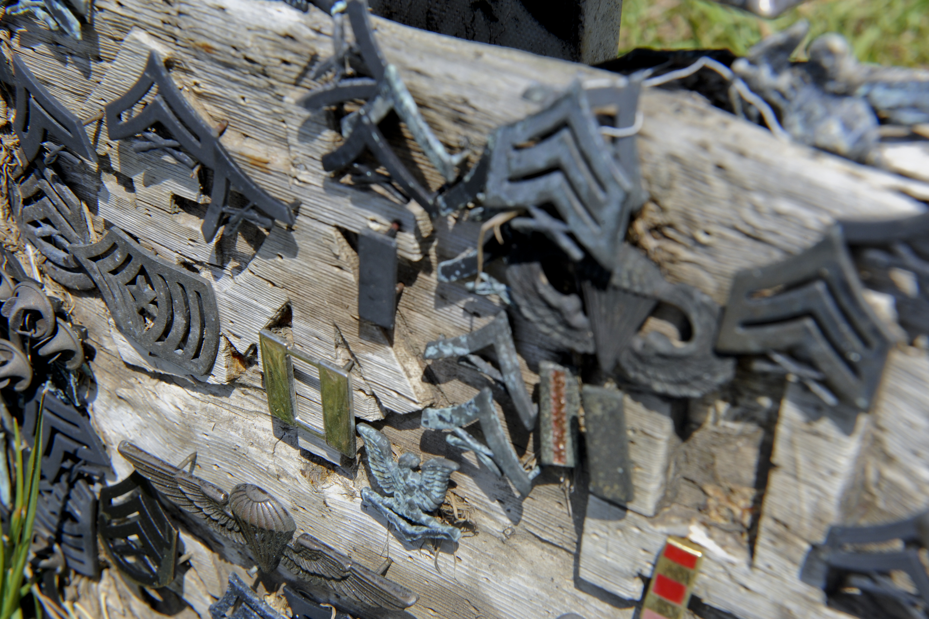 U.S. Marine collar rank insignias are left on top of Mount Suribachi as a sign of respect at Iwo To, formally known as Iwo Jima, Japan, March 30, 2012. Members of the Kadena Air Base, Japan, 18th Operation Group visited the island as part of a military professional education experience. (U.S. Air Force photo by Airman 1st Class Brooke P. Beers/Released)