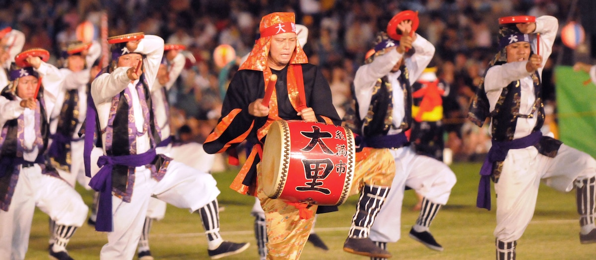 Okinawa City, JAPAN - A Taiko drummer leads his team during the 2010 Eisa Festival inside the Koza Sports Complex Sept. 12. The three-day event is the largest of its kind on the island. (U.S. Air Force photo by Tech. Sgt. Mike Tateishi)