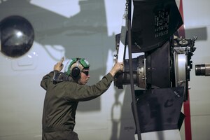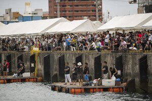 U.S. Air Force Chief Master Sgt. Heriberto Diaz, Erwin Professional Military Education Center commandant, and Master Sgt. Lauren Strike, Erwin PME Center director of education, stand at the position of parade rest during a Sept. 11 remembrance ceremony, Sept. 11, 2017, at Kadena Air Base, Japan.